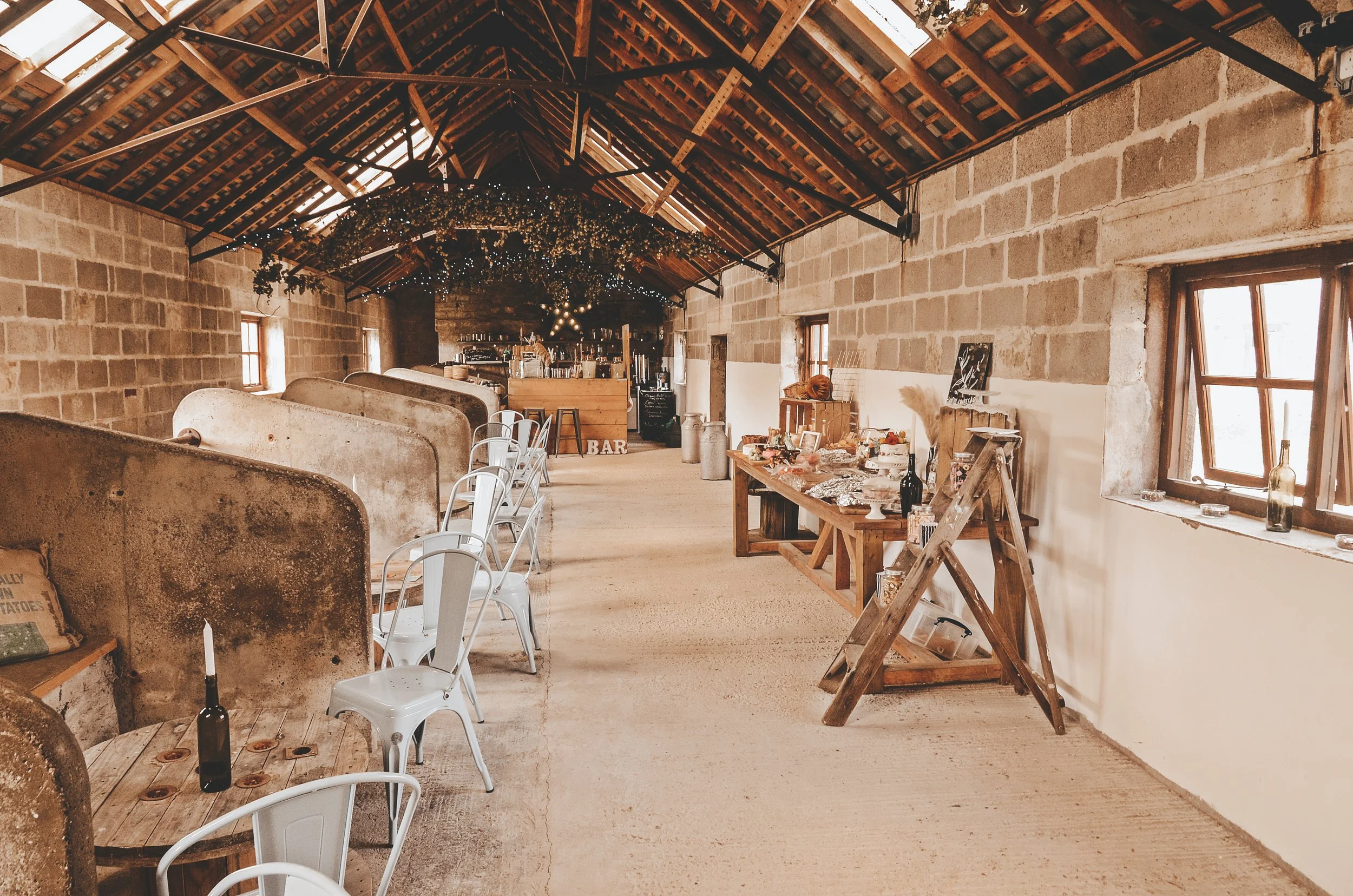 We are able to seat 120 guests for a sit down meal within The Barn. This space is adjacent to The Stalls and The Parlour. We have a large top table, trestle tables and foldable chairs for you to arrange as you wish.